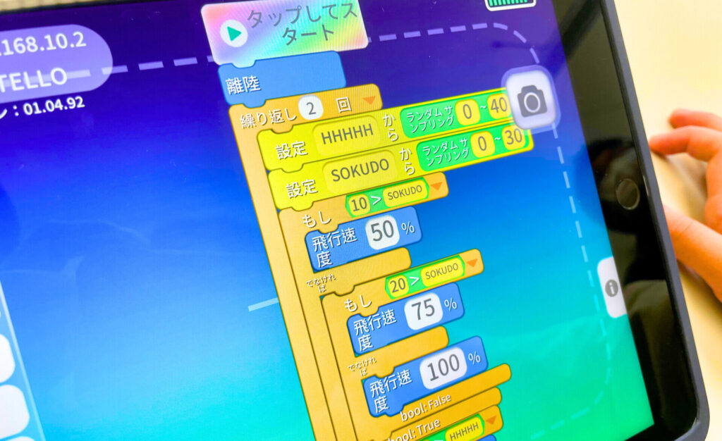プログラムを組んで自動でドローンを操縦できます。専門的な知識は全く必要のない簡単なプログラムなので小学生の子も安心!