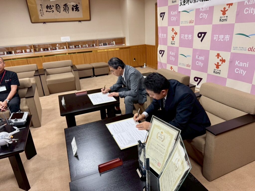 可児市様と「災害時の無人航空機を活用した支援協力に関する協定」を締結しました。